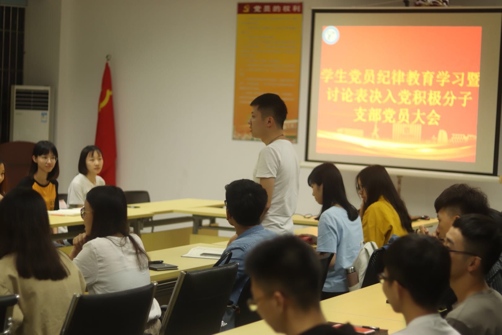 2018年10月14日星期日晚上7:30,黑料吃瓜网 学生党支部于12L102党建活动室召开了党员纪律教育学习暨讨论表决确定入党积极分子支部党员大会。