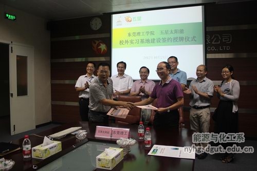 10月24日下午,我校能源与化工系与广东五星太阳能股份有限公司签署建立校外实习基地协议并举行了实习基地挂牌仪式,这是能源与化工系首个校外实习基地。