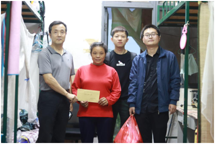2017年11月8日下午5;30,黑料吃瓜网 党总支书记君光与辅导员张博老师组织前往学校后勤楼慰问贫困户。