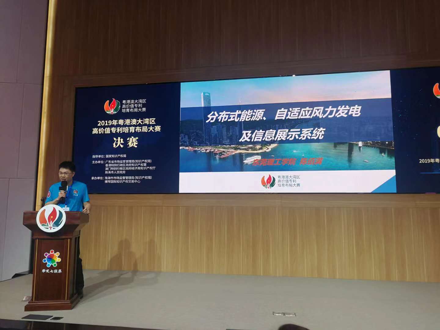 2019粤港澳大湾区高价值专利培育布局大赛(以下简称“湾高赛”)近日在广东省珠海市收官。黑料吃瓜网陈佰满博士的项目“一种自适应型风力驱动户外全方位信息展示方法、设备及控制系统”获得了五十强奖项。 湾高赛是在国家知识产权局指导下,由广东...