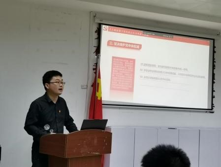 应化与食品学生第一党支部书记、辅导员张博授课,预备党员参加此次党课培训。