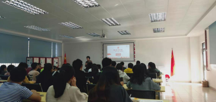 本次党课以“爱国,奋斗,责任,担当——不忘初心,牢记使命”为主题。课上柳卓君首先结合习近平新时代中国特色社会主义思想,强调作为党员要牢记党的初心和使命,全心全意地为同学们服务。并重点讲解了坚持理想信念,坚持以人民为中心,同时强调了作为学生党员坚持理想信念的重要性。柳卓君又从“爱国,奋斗,责任,担当”八字出发,强调:作为正式党员,预备党员的我们,应不忘初心,牢记使命,发扬斗争精神,增强斗争本领。