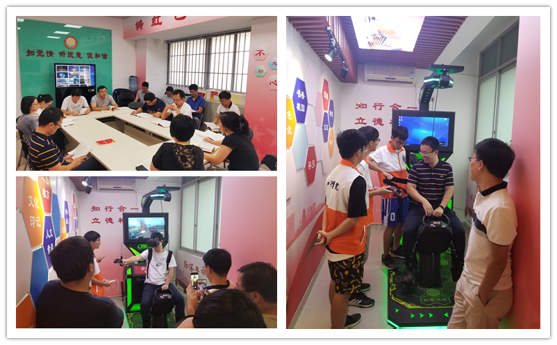 化学工程系教师党支部开展“不忘初心、牢记使命”主题教育党日活动。支部的全体教工党员在松山湖校区下沉广场旁边的党员活动室,依次分别进行了红色教育VR主题体验、党史读书分享与交流会。会议由“双带头人”支部书记傅小波主持。
