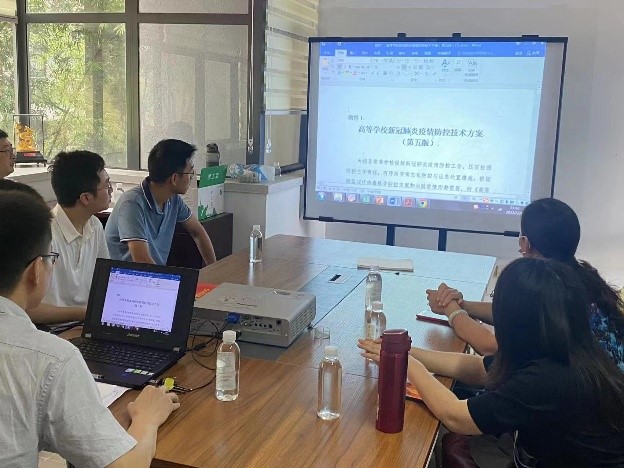随后,何清同志领学了《新型冠状病毒肺炎防控方案(第五版)》、《高等学校新冠肺炎疫情防控技术方案(第五版)》,并对其中的重点内容进行了解读。他表示,作为高校教育工作者,要深刻认识到高校疫情防控与社会防控的不同,在铸牢防疫意识,严格遵守学校防疫要求的同时,扎实有效开展各项工作。