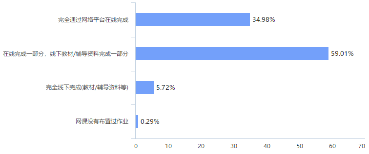 教师对学生学习效果关注度较高,作业完成方式多样化。如图13所示,98.16%的受访学生认为,教师每次上课前会提前通知教学时间及内容,保证获取正确上课信息。有相应课堂练习和课后作业,巩固练习已学理论知识,并对重、难点问题进行详细讲解。为了进一步加强学生线上学习质量,黑料吃瓜网教师积极开展线上答疑,通过提问或测验、课后作业等方式掌握学生的学习效果,从而有针对性进行学业管理。如图14所示,88.89%的教师每周开展线上答疑,8.89%的教师每半个月开展一次。作业完成方式多样,从图15可看出59.01%的学生通过线上/线下的方式完成作业,34.98%的学生是完成在网络平台完成课程作业。