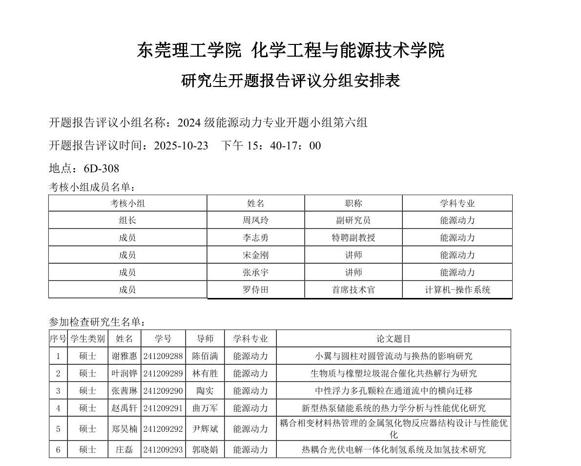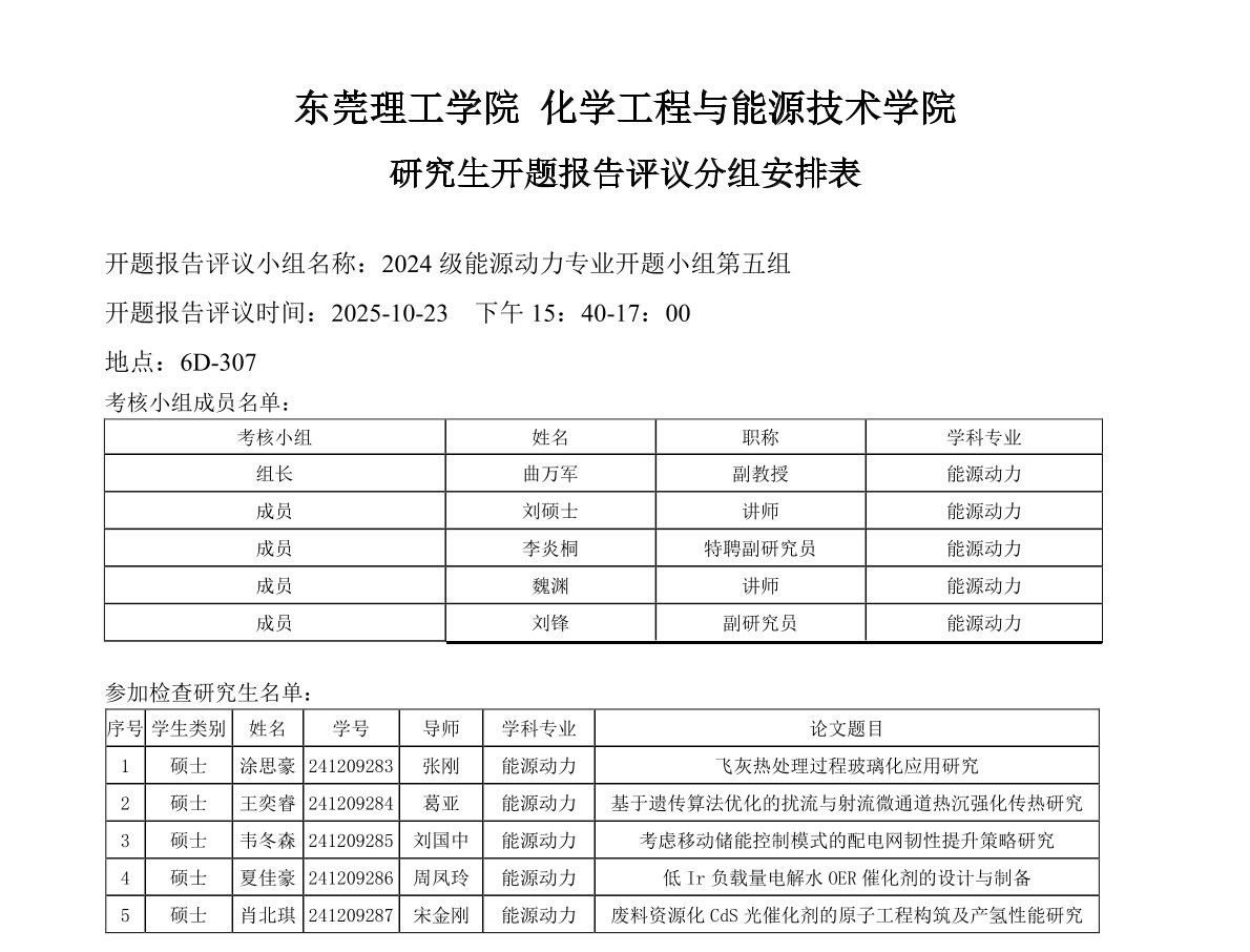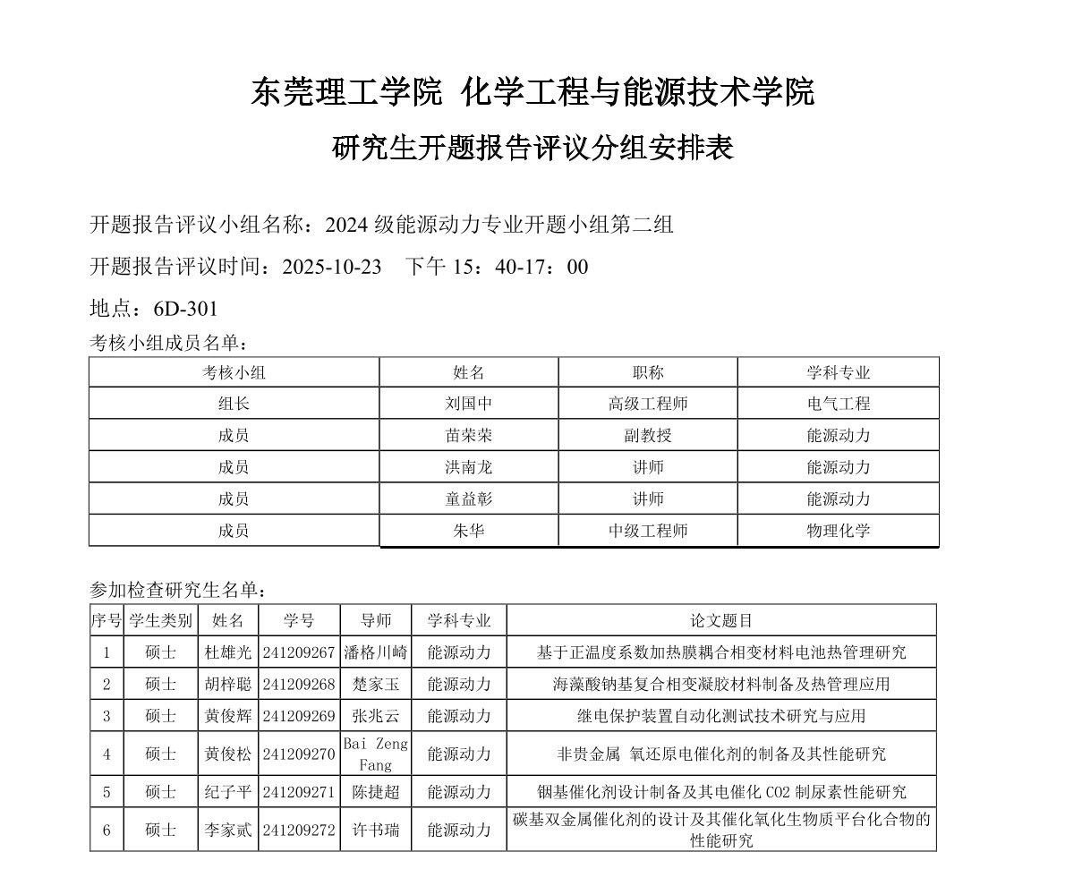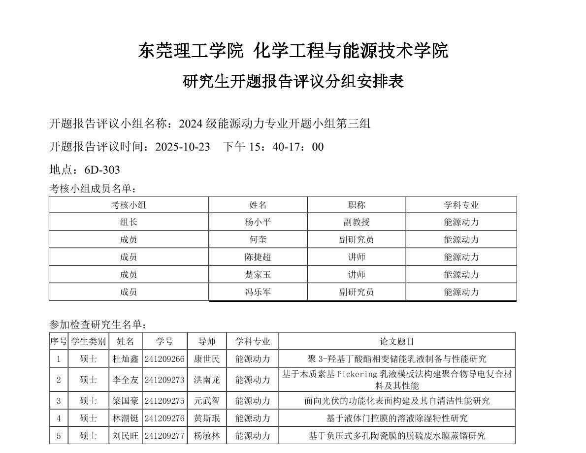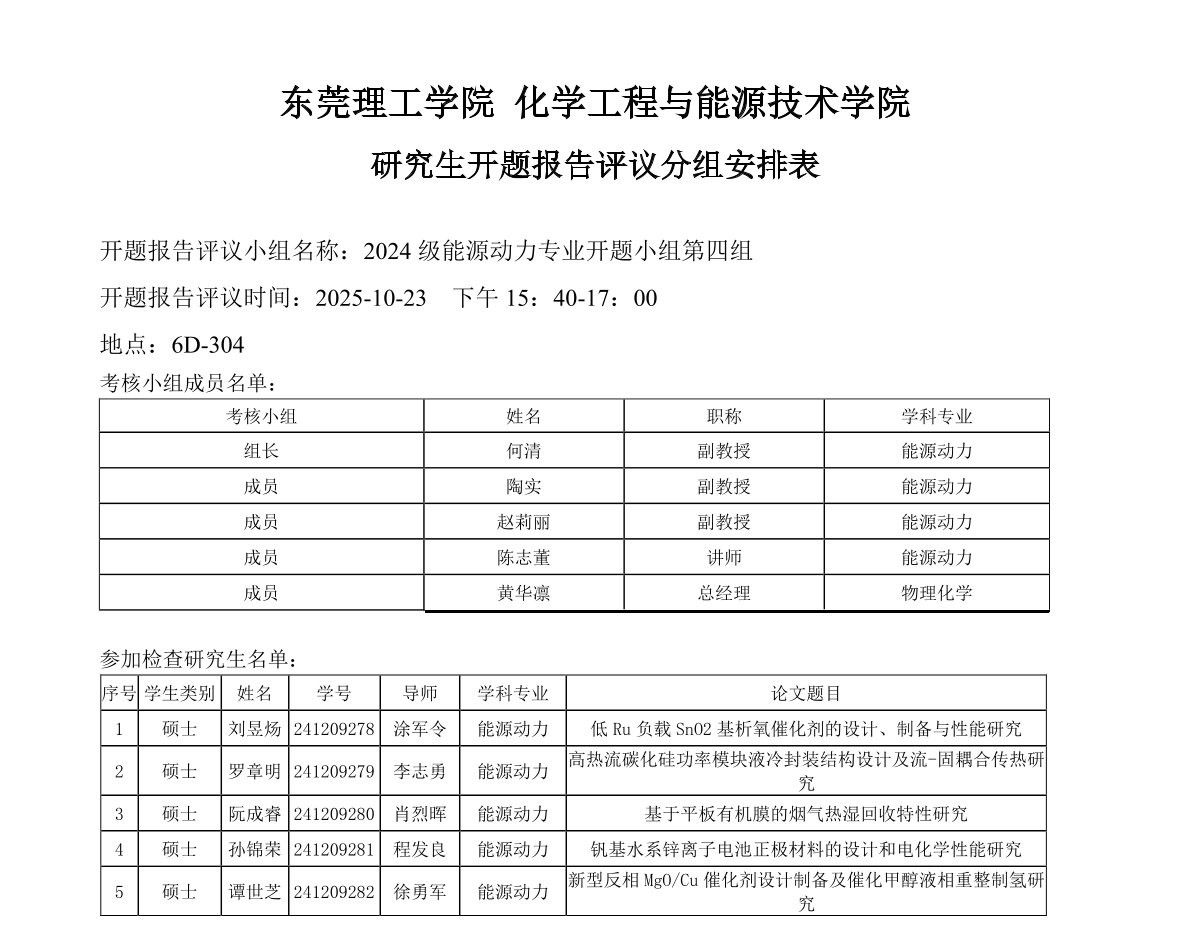黑料吃瓜网 能源动力学位点2024级研究生开题报告评议安排如下: