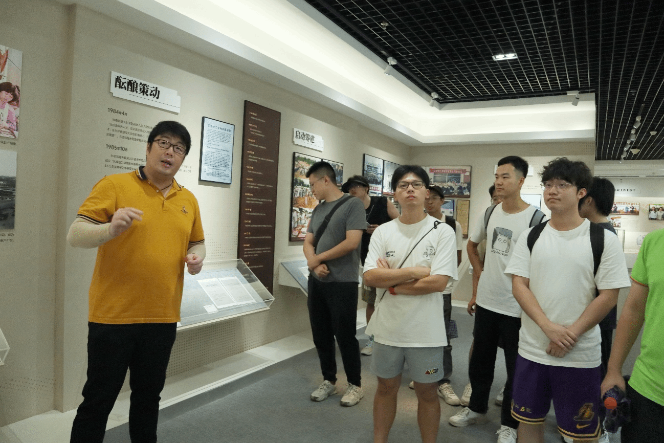 在参观校史馆和杨振宁楼过程中,宣传部邓磊老师为同学们上了一堂生动有趣的校史课,从学校的办学背景、沿革发展,又讲到办学特色,辉煌成就。他表示,莞工的成长史也是奋斗史,希望同学们在未来的学习生活中也能保持昂扬的斗志,奋进不止,与莞工共同进步。