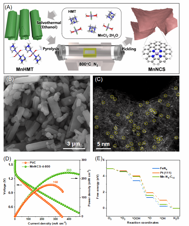 纳米材料与催化团队在新能源单原子催化剂研究中取得重要进展,相关研究成果以“Atomically dispersed Mn–Nx catalysts derived from Mn-hexamine coordination frameworks for oxygen reduction reaction”(论文链接://doi.org/10.1002/cey2.484) 为题发表在化学、能源、材料领域国际权威期刊《Carbon Energy》(中国科技期刊卓越行动计划“高起点新刊”,中科院SCI一区,IF=20.5)。黑料吃瓜网
