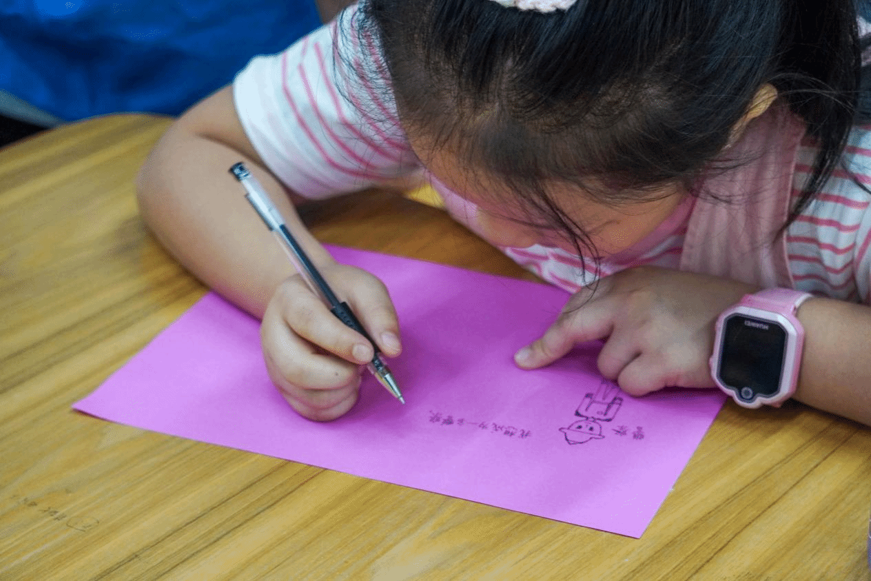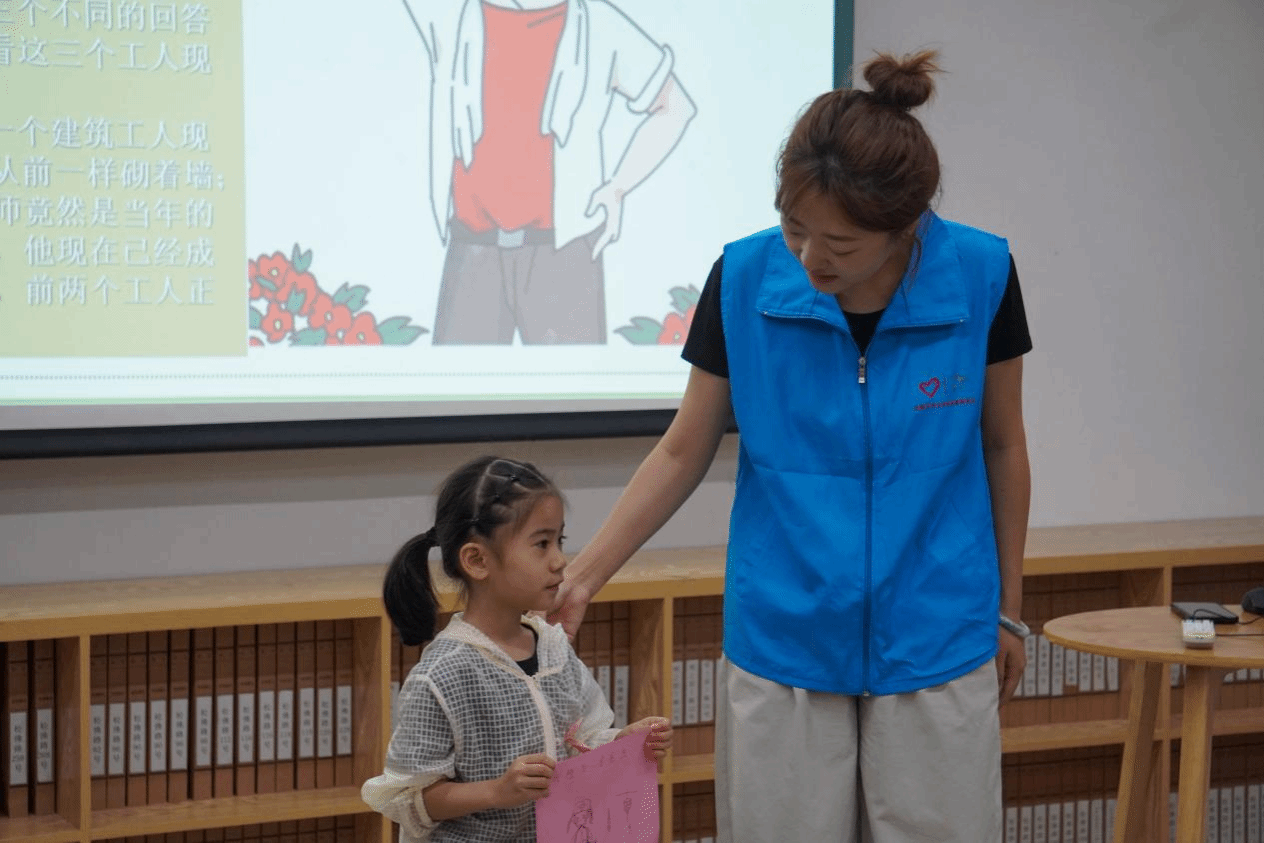 上午九点半左右,报名参加本次活动的家长和小朋友们齐聚在长富社区活动室中。主讲人鲁文慧以职业启蒙与设想为切入点,引导小朋友们思考自己未来的职业。随后,志愿者们为小朋友们发下彩色卡纸,鼓励他们在纸上画下或写下自己未来想从事的职业。小朋友们兴致勃勃,拿起笔在纸上尽情书写着对未来的设想。