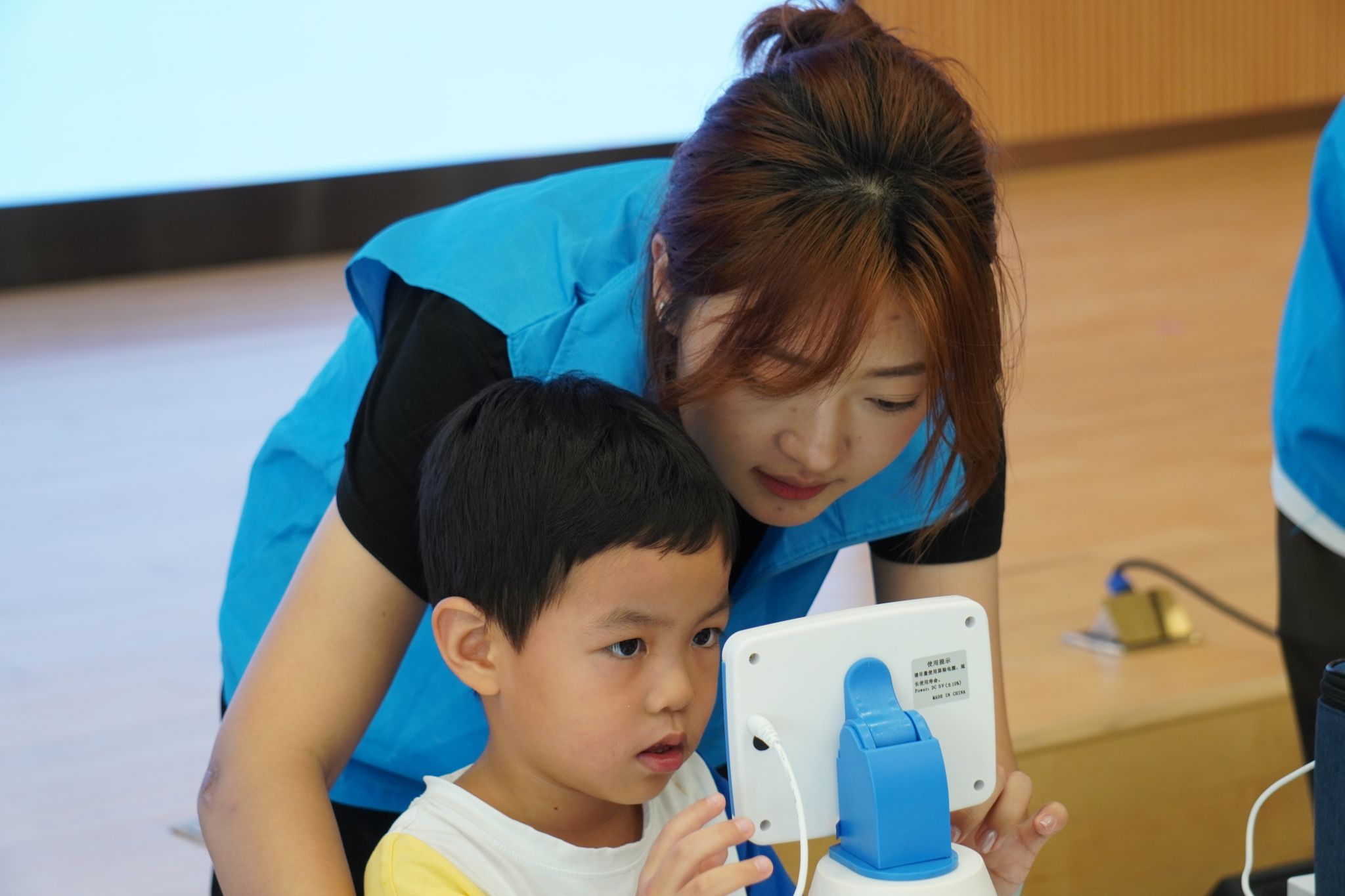 在这场主题为“微观世界大探秘”的科普宣传活动中,志愿者们向小朋友们传授科学小知识,带领用显微镜观察微观世界,讲述科学家故事。一群小朋友用童言童语讲出自己所知道的科学家的故事。志愿者谢楷锋向他们讲述了陈和生院士及其团队的故事,鼓励小朋友们在未来的成长道路上善于思考、勇于探索、坚定信念、不怕困难。