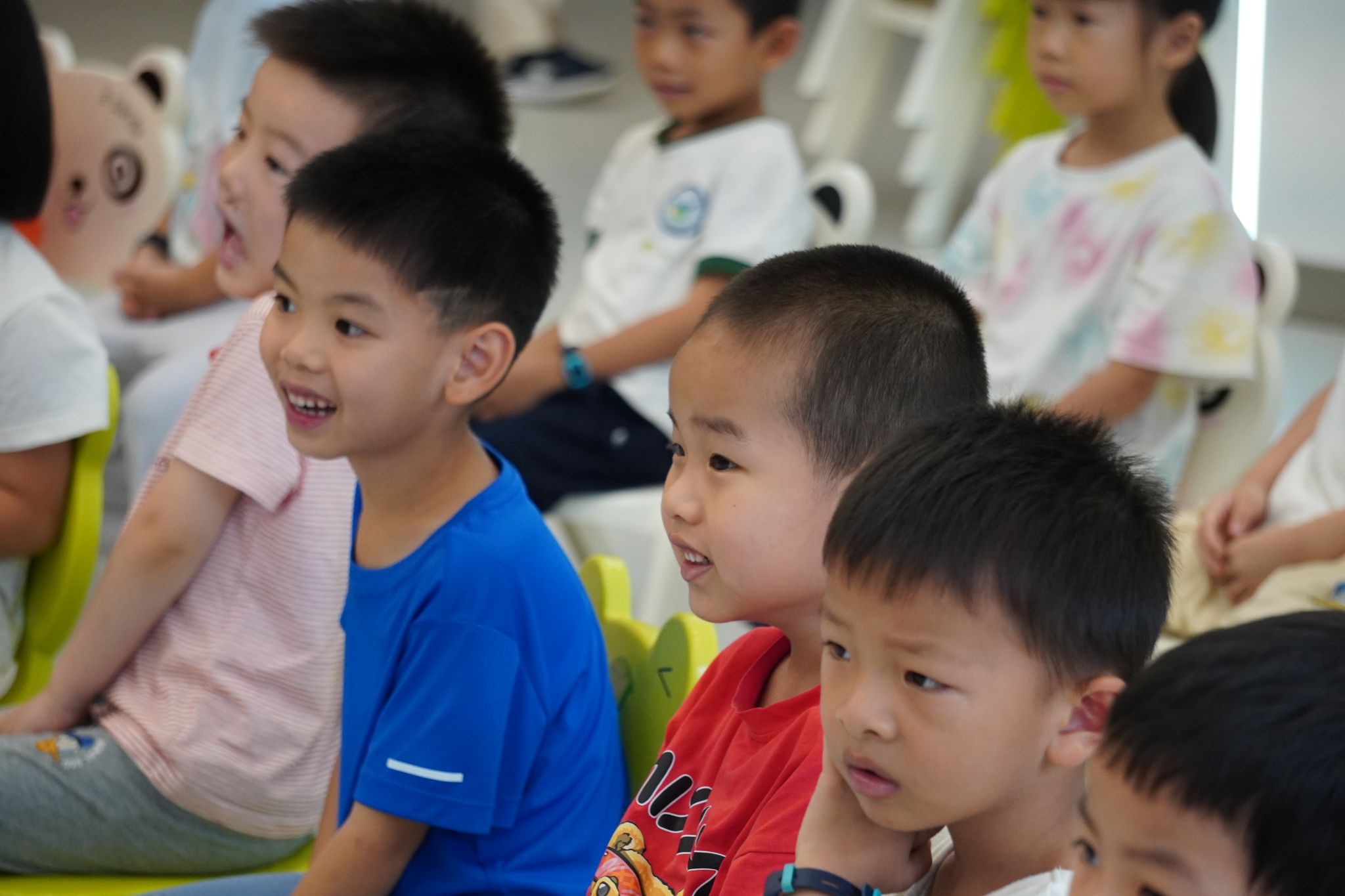 “致敬科学家”志愿服务队的志愿者正在鼓励小朋友们发言。现场气氛热闹又活跃。20多个小朋友们和大学生哥哥姐姐们热情互动。