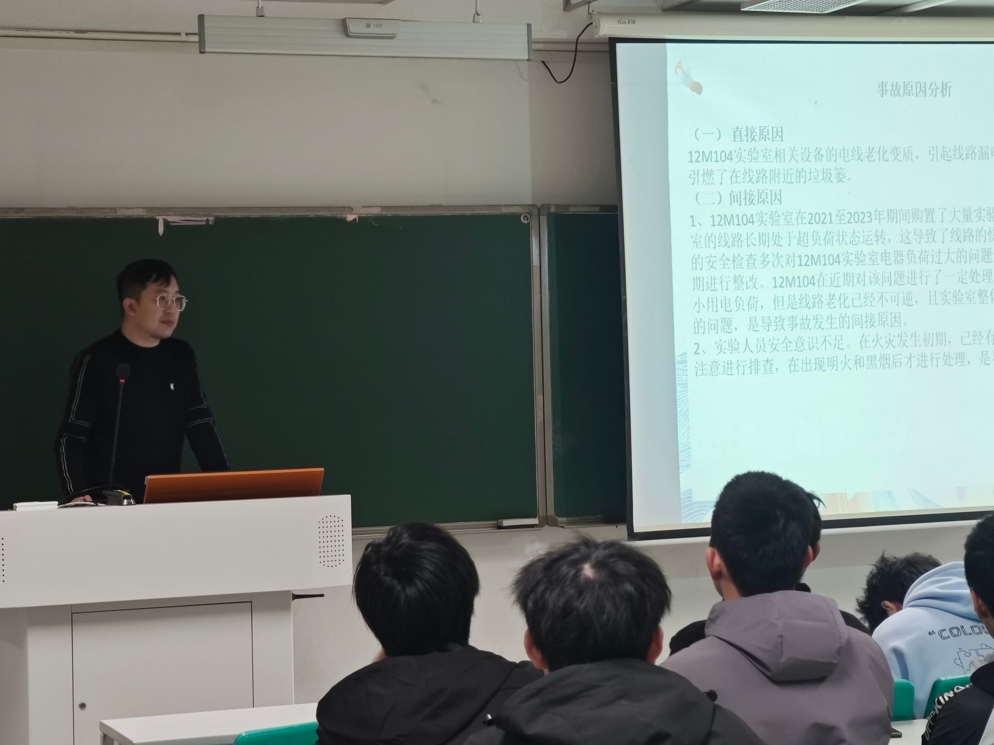 会上,张玄老师就实验室常见的安全隐患、突发事故处理方法、危险化学品处置以及贵重仪器设备使用规范等方面进行教育培训,进一步强化留校学生实验室安全防范意识,不断增强实验室安全应急能力。