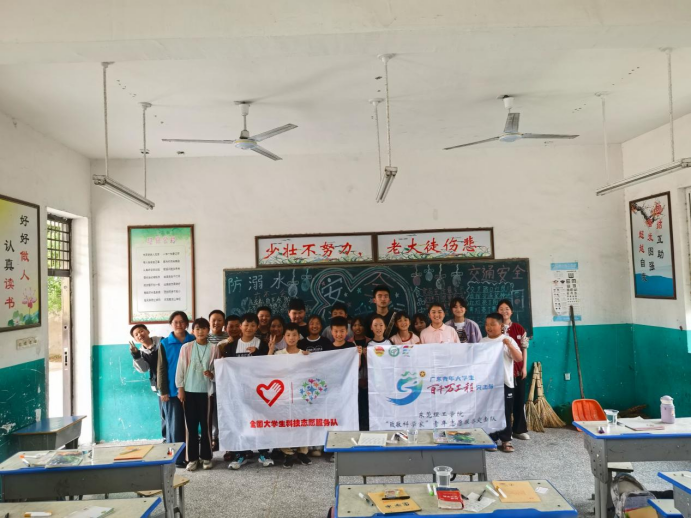 “致敬科学家”青年志愿服务队队员利用“五一”假期走进河南省驻马店市正阳县皮店乡潘店小学开展科普活动,点燃乡村科学火种。