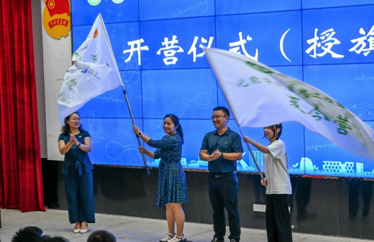 各系负责人、指导老师出席开营仪式并观摩竞赛。开营仪式由张刚主持。李利平和何运兵分别为夏令营负责人代表授社会实践调研队旗和夏令营营旗。