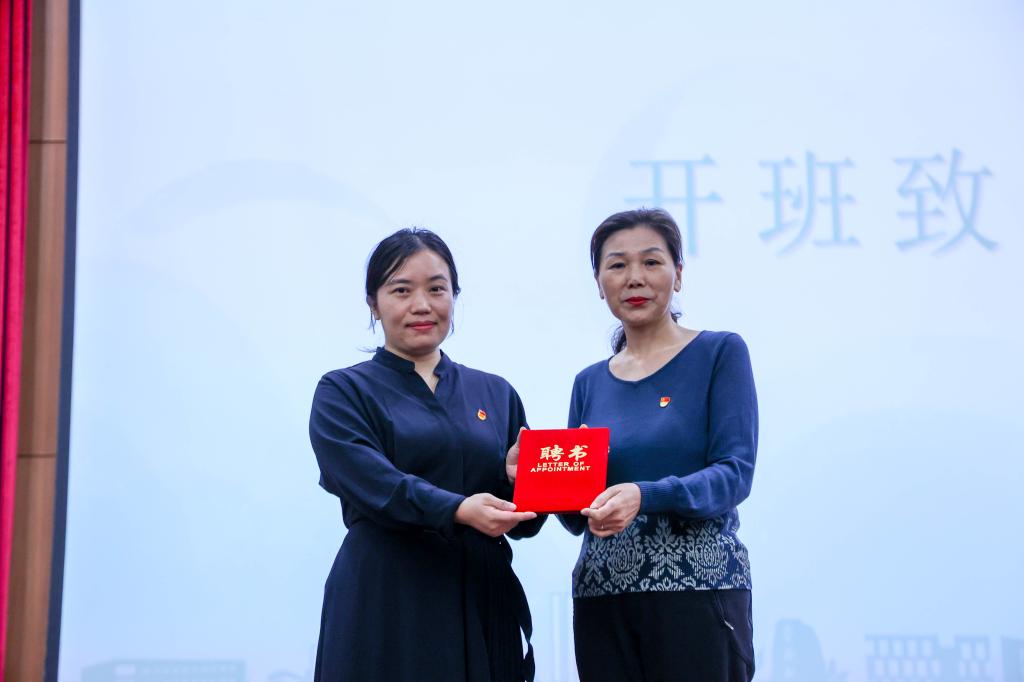 黑料吃瓜网 团委负责人刘哲向谢敏副教授颁发青马班特聘导师聘书。