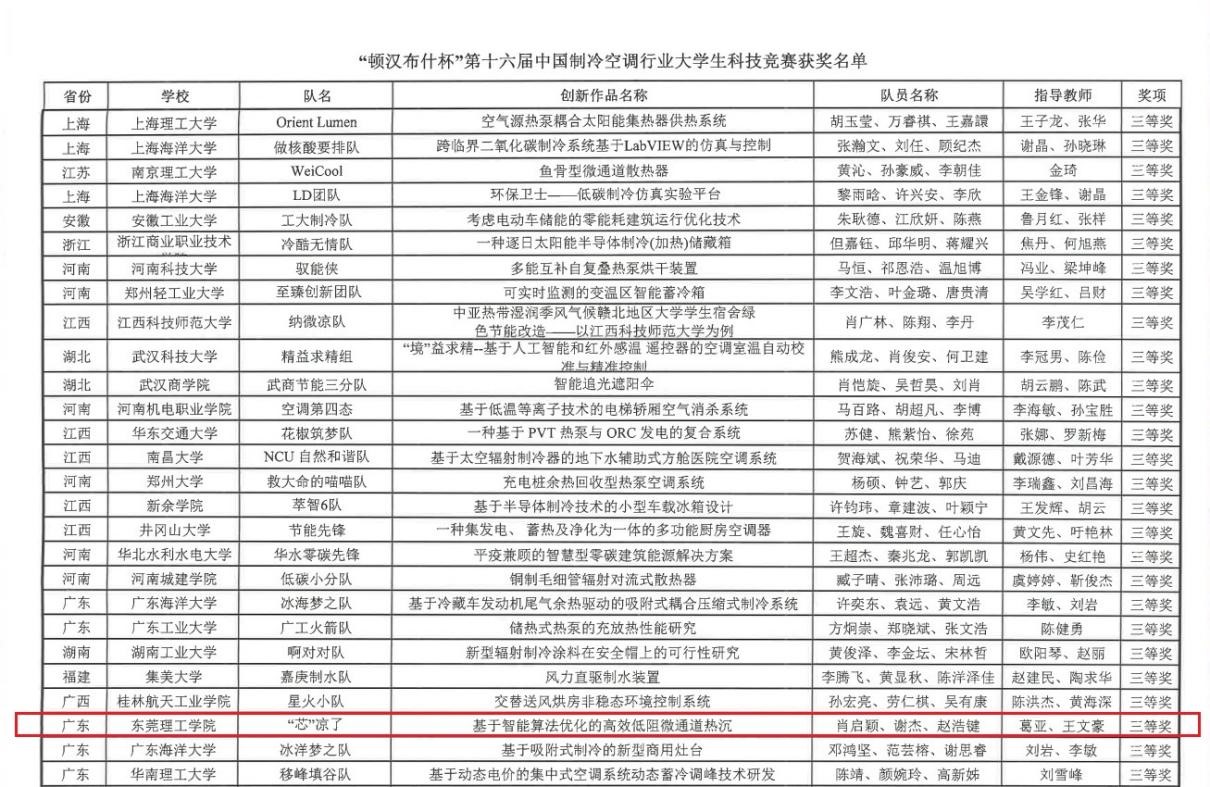 学子陆飞宇、马吉楠、袁嘉欣参赛项目“全天候零碳太阳能海水淡化系统”荣获一等奖;肖启颖、谢杰、赵浩健参赛项目“基于智能算法优化的高效低阻微通道热沉”荣获三等奖。