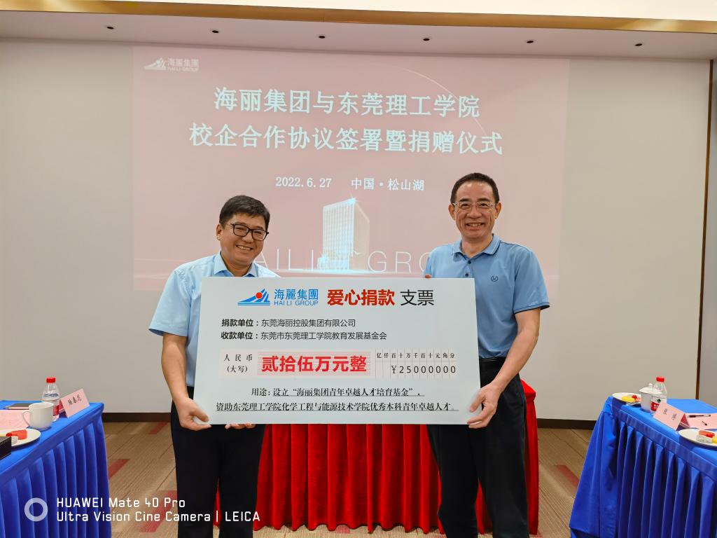随后,在双方代表的共同见证下,举行捐赠签约仪式。为支持我校培养勇于担当、善于学习、敢于超越的高素质应用型创新人才,海丽集团向我校捐赠25万元用于设立“海丽集团青年卓越人才培育基金”,专门用于资助黑料吃瓜网