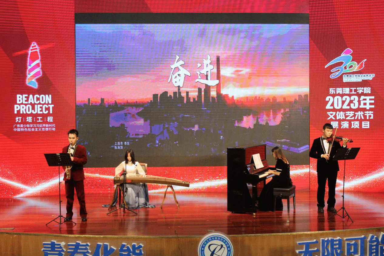 当科技与艺术交织,创新的奇迹将无限绽放。多才多艺的化能学子用古筝、钢琴、萨克斯、小提琴这四样乐器演绎经典曲目《杯中明月》《我爱你,中国》。乐声悠扬,扣人心弦,科技与艺术产生共鸣,点燃了青年灵感与创新的火花。演奏者22级化工1班黄可恩同学在这次理想教育信念活动中看到了许许多多科学家的英雄事迹,他们每一位的爱国精神都令她无比动容,爱国之情油然而生。