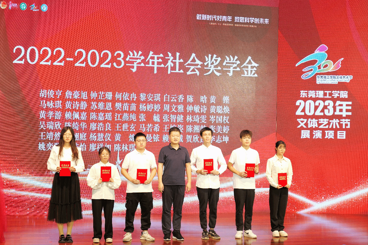 党委书记尹辉斌,副院长黄斯珉、张刚、何运兵,党委副书记杨方以及受邀到场的企业嘉宾东莞市能源投资集团有限公司能源研究院常务副院长、东莞新锋光伏能源科技有限公司总经理李三军,东莞海丽控股集团有限公司总经理赵海红分别为获奖学生颁奖。荣获社会助学金和校内一等奖学金的22级化卓1班廖祥如同学表示,非常感谢学校和老师的培养,将继续努力、接续奋斗,与时代同行,争做有为青年,成为更优秀的自己!现场新生观众23级能动1班黄政豪同学看到台上受到表彰奖励学长学姐们,表示要向榜样学习,做新时代好青年,致敬科学创未来。