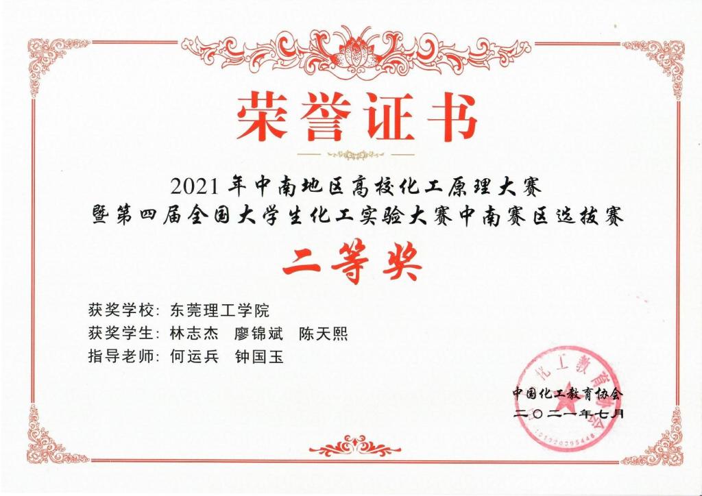 组织学生参加了由中国化工教育协会主办,华南理工大学承办的中控杯2021年中南地区高校化工原理大赛,近日,传来比赛喜讯,我校学生在赛事中获得二等奖。