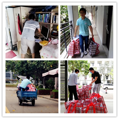 在团队热心配合和高效组织下,工作进展顺利,百余间宿舍的物资在短短的两个小时内,全部整理打包,于当日领取完。