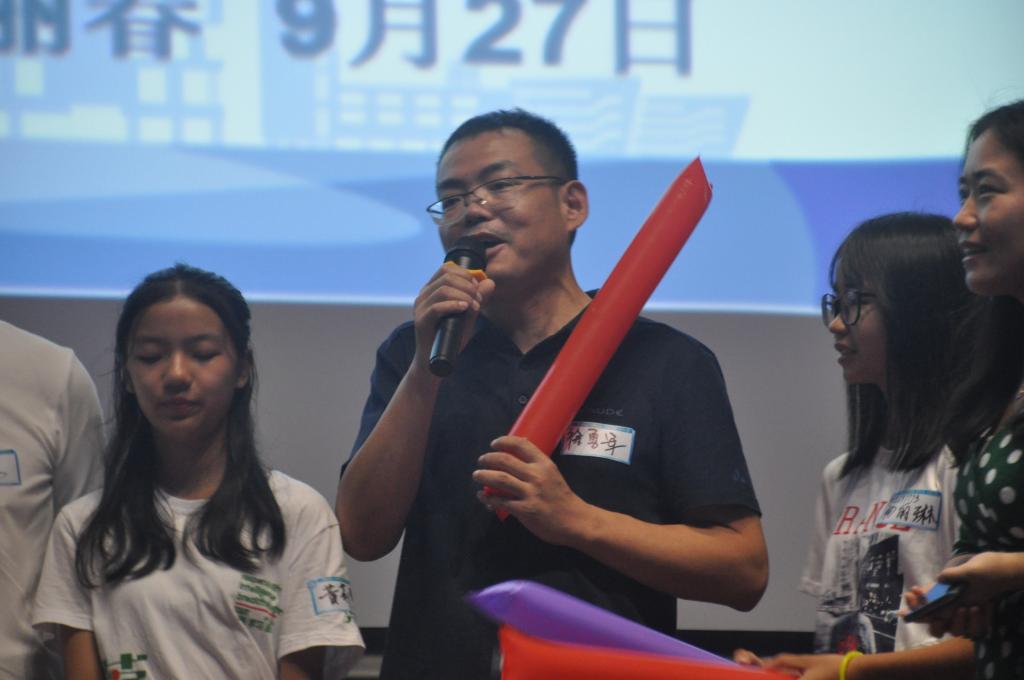 除了为新生庆生外,现场师生也为祖国母亲的70岁生日庆祝了一番。在《我和我的祖国》莞工特制版mv的放映中,全场师生一起高声歌唱,中途不少同学情不自禁拿出手机,点开五星红旗的图片为祖国母亲祝贺。
