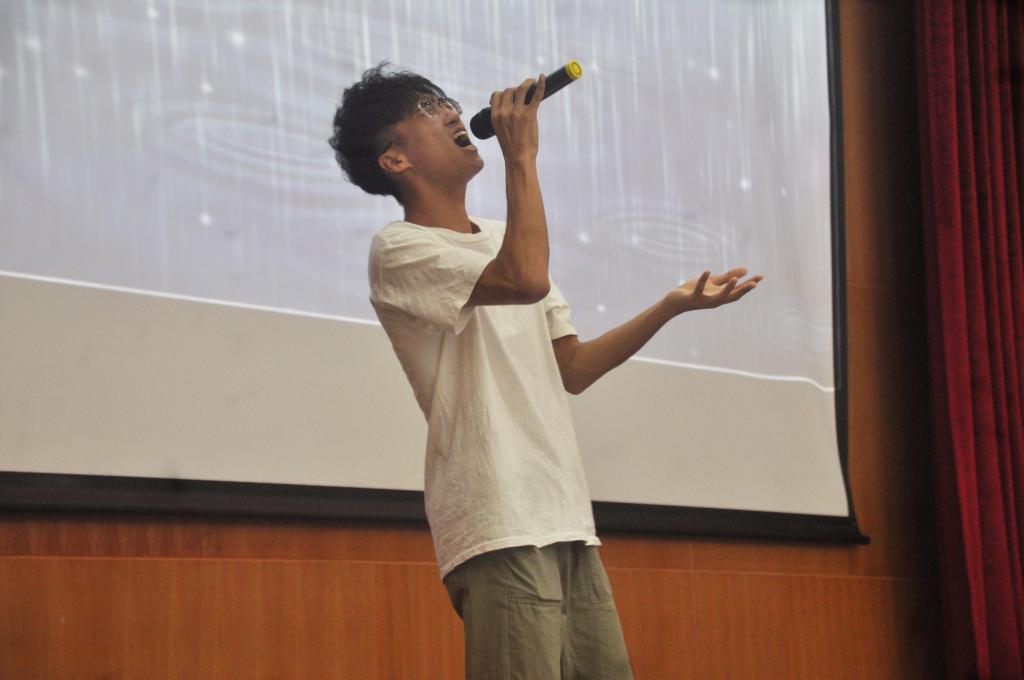辅导员谢真葵给19级新生带来了一首《男孩》。陈梓炀和雷振鹏合唱《下雨了》。萌新周垚旭带来的是《Sugar》maroon5的经典曲目了,不得不说这届新生真是人才辈出,细数其中,不乏《月半小夜曲》的感动、《好运来》的豪迈、《慢慢喜欢你》的柔和以及《仰望星空》的坚定。