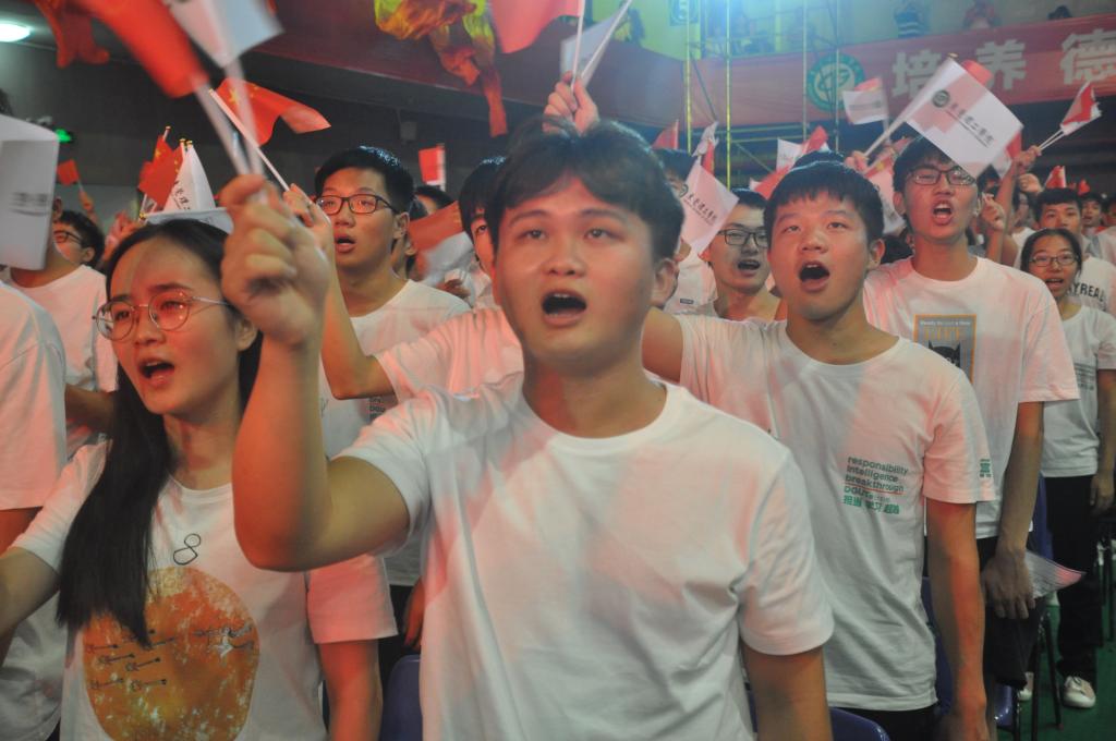 党政领导班子全部带队登台。随着朗诵激昂的推进,台下全体化能学子起立,挥动着手中的小旗,欢呼阵阵。台上台下,交相呼应,共同喊出“以青春之我,创建青春之理想,青春之国家,青春之民族“的理想和决心,洪亮的口号震荡在每个人心中,滂湃的歌声响彻在校园上空。
