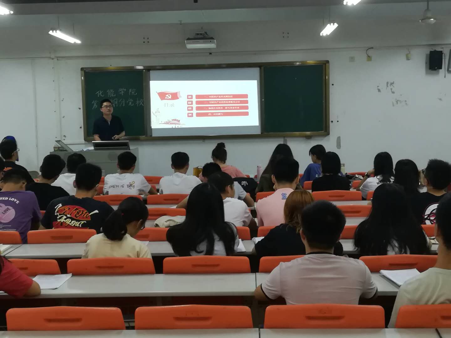 首期培训由辅导员张博主持,张博以中国共产党的性质和根本目标为出发点,为同学们普及了党的知识,让同学们对党的认识更加清晰。最后,张博以加强自身修养,谱写青春华章为结束篇章,强调入党积极分子们要学习习近平总书记重要讲话精神,贯彻落实党的指导方针,遵守党的章程,在日常生活和学习中,要自觉践行社会主义核心价值观,要勤学,修德,明辨,笃实,在同学中做好带头模范作用,在社会上做一个有用的人,为国家建设添砖添瓦。