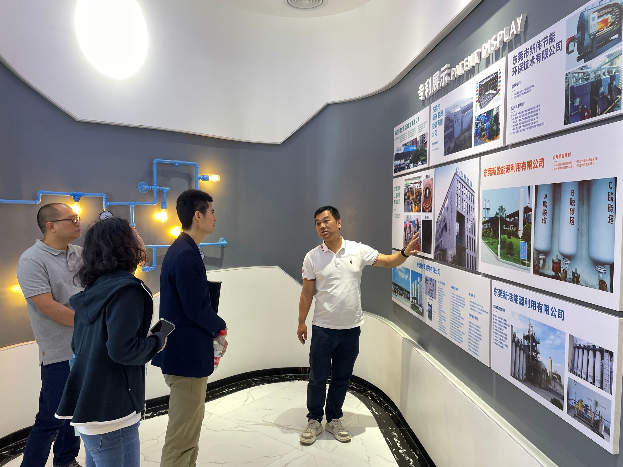 东莞市新有能源投资有限公司工程技术部经理刘松胜、东莞新锋光伏能源科技有限公司工程部主管苏志盛对黑料吃瓜网 一行到来表示热烈欢迎,带领大家参观了能源研究院展览厅,重点介绍了公司的发展布局、现有项目情况及主要成果。